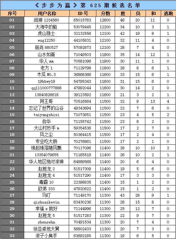 《步步为赢》第625期候选名单公布