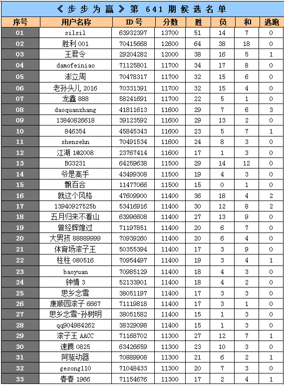 经过一周的激烈角逐,《步步为赢》第641期网络海选的33名候选选手已经揭晓。