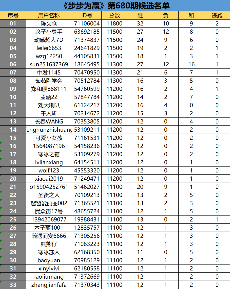 经过一周的激烈角逐,《步步为赢》第680期网络海选的33名候选选手已经揭晓。