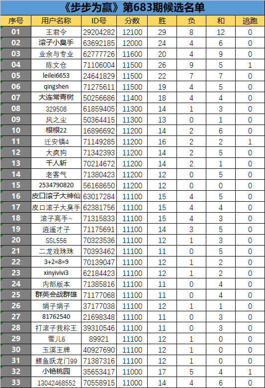 经过一周的激烈角逐,《步步为赢》第683期网络海选的33名候选选手已经揭晓。