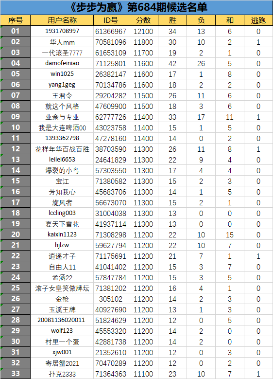 《步步为赢》第684期候选名单公布