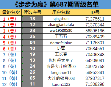 根据2021年4月1日中国福利彩票“双色球”玩法第20134期开奖结果,《步步为赢》第687期选手晋级名单已经产生。