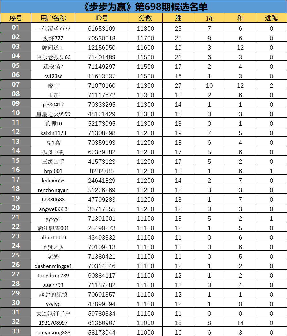 《步步为赢》第698期候选名单公布