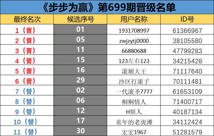 根据2021年6月24日中国福利彩票“双色球”玩法第21070期开奖结果,《步步为赢》第699期选手晋级名单已经产生。