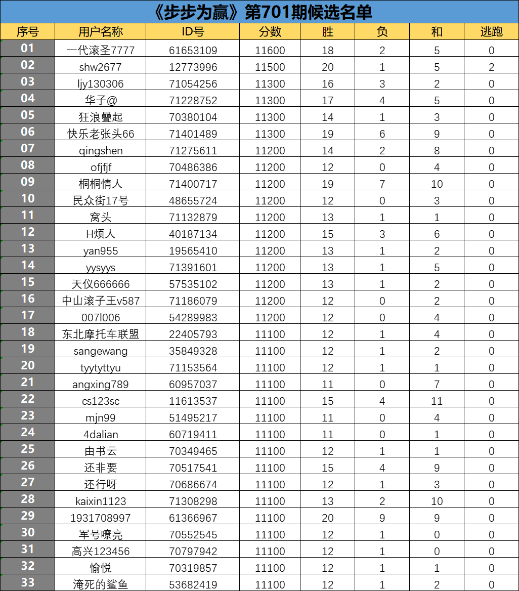 《步步为赢》第701期候选名单公布