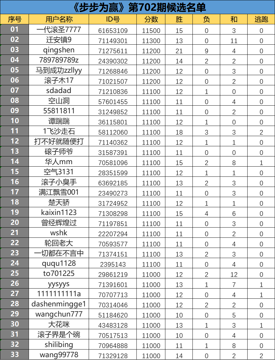 《步步为赢》第702期候选名单公布