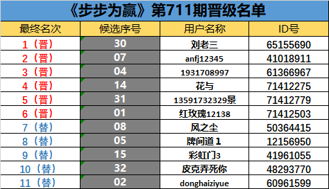 《步步为赢》第711期晋级名单公布