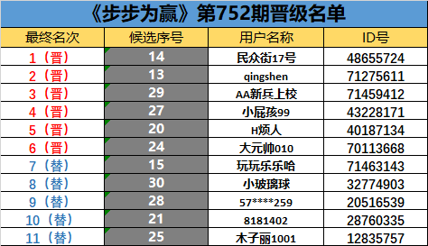 《步步为赢》第752期晋级名单公布
