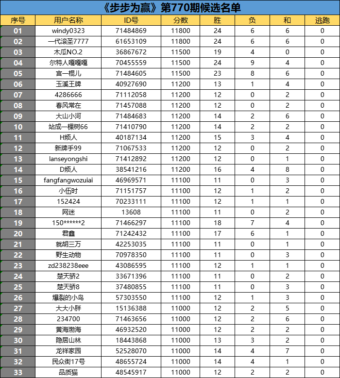 经过一周的激烈角逐,《步步为赢》第770期网络海选的33名候选选手已经揭晓。