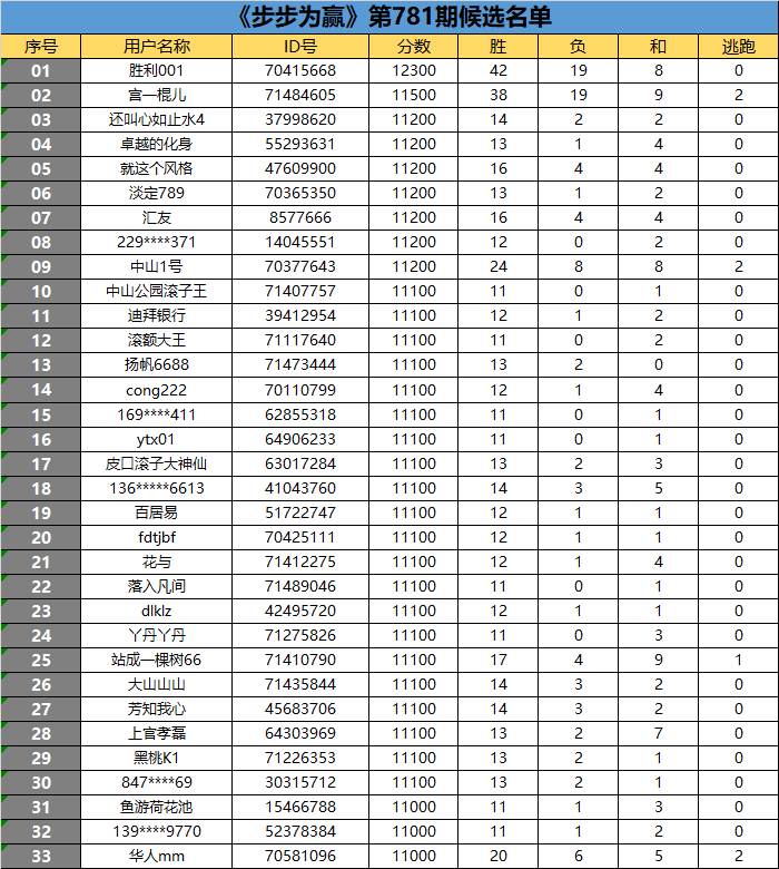 经过一周的激烈角逐,《步步为赢》第781期网络海选的33名候选选手已经揭晓。