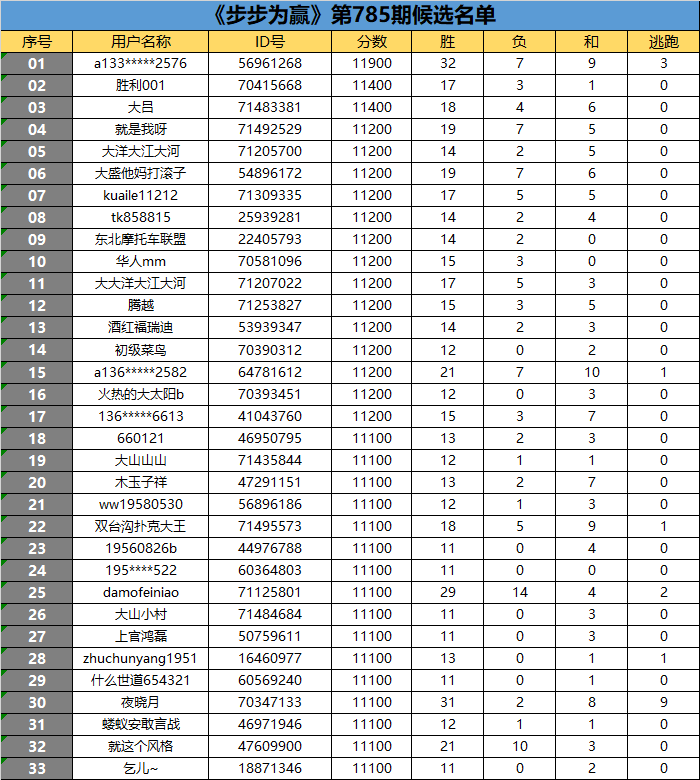 经过一周的激烈角逐,《步步为赢》第785期网络海选的33名候选选手已经揭晓。