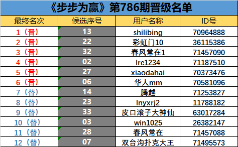 根据2023年5月25日中国福利彩票“双色球”玩法第23059期开奖结果,《步步为赢》第786期选手晋级名单已经产生。