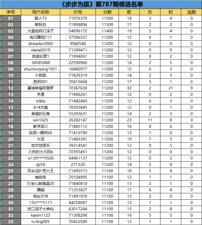 《步步为赢》第787期候选名单公布