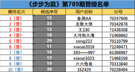 根据2023年6月15日中国福利彩票“双色球”玩法第23068期开奖结果,《步步为赢》第789期选手晋级名单已经产生。