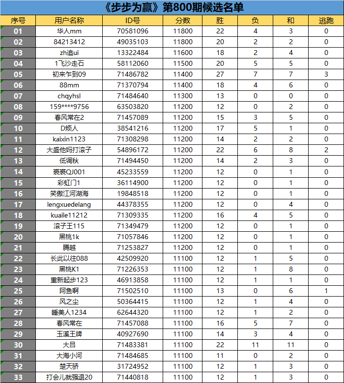 经过一周的激烈角逐,《步步为赢》第800期网络海选的33名候选选手已经揭晓。