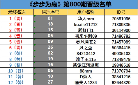 根据2023年8月31日中国福利彩票“双色球”玩法第23101期开奖结果,《步步为赢》第800期选手晋级名单已经产生。