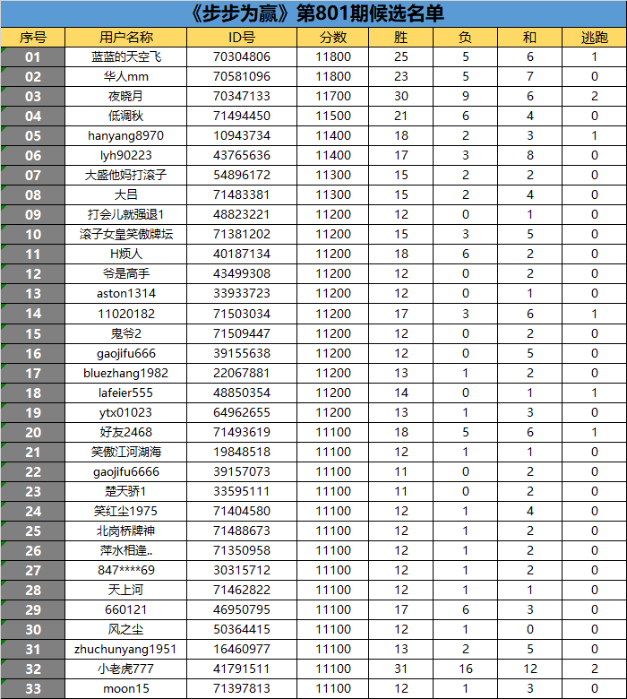 经过一周的激烈角逐,《步步为赢》第801期网络海选的33名候选选手已经揭晓。