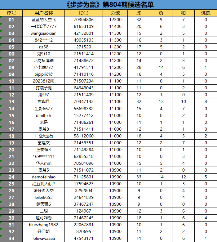 《步步为赢》第804期候选名单公布