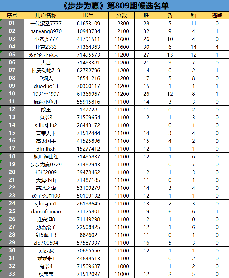 《步步为赢》第809期候选名单公布