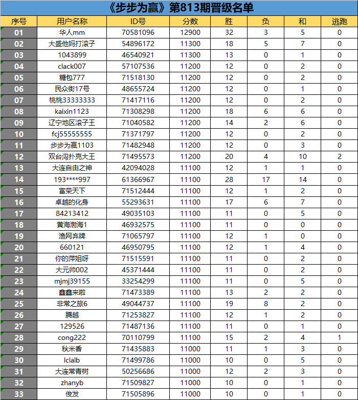 《步步为赢》第813期晋级名单公布