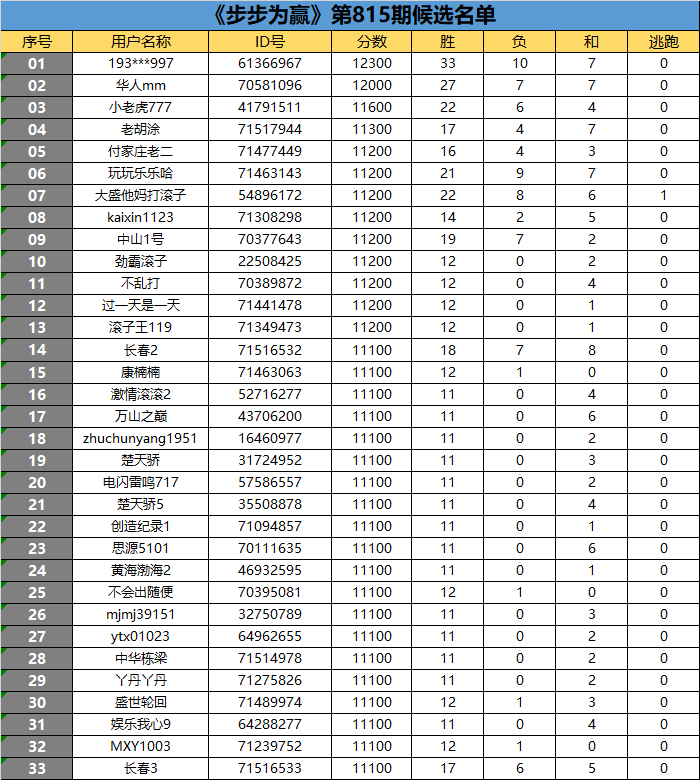 经过一周的激烈角逐,《步步为赢》第815期网络海选的33名候选选手已经揭晓。