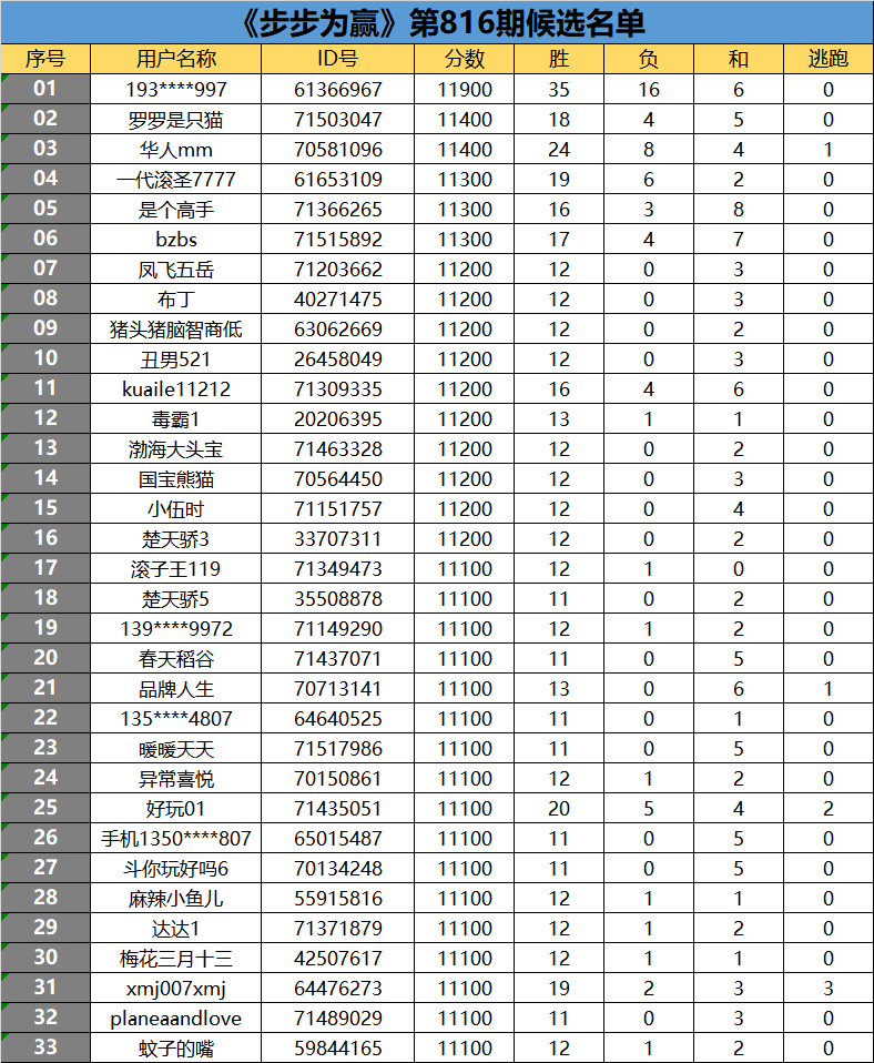 《步步为赢》第816期候选名单公布
