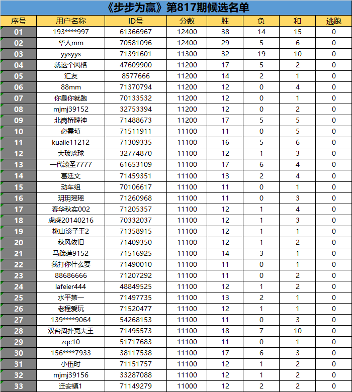 经过一周的激烈角逐,《步步为赢》第817期网络海选的33名候选选手已经揭晓。