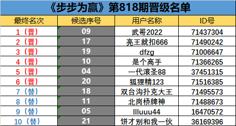 根据2024年1月4日中国福利彩票“双色球”玩法第24002开奖结果,《步步为赢》第818晋级名单已经产生。