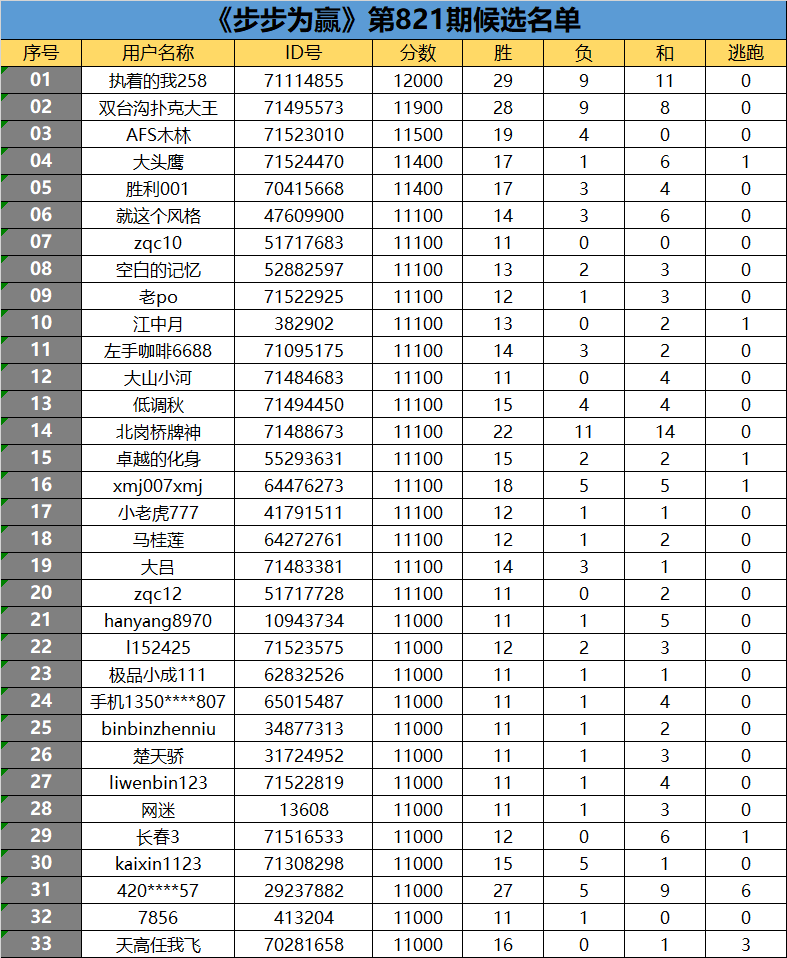 《步步为赢》第821期候选名单公布