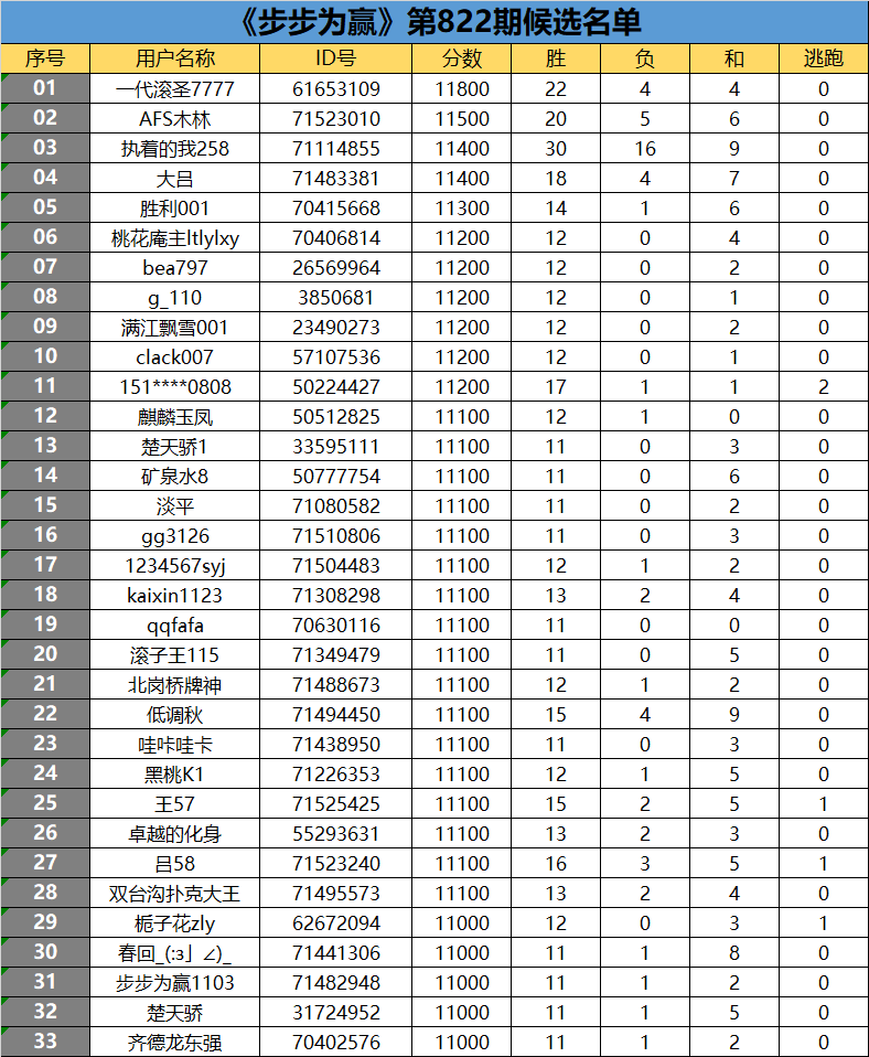 经过一周的激烈角逐,《步步为赢》第822期网络海选的33名候选选手已经揭晓。