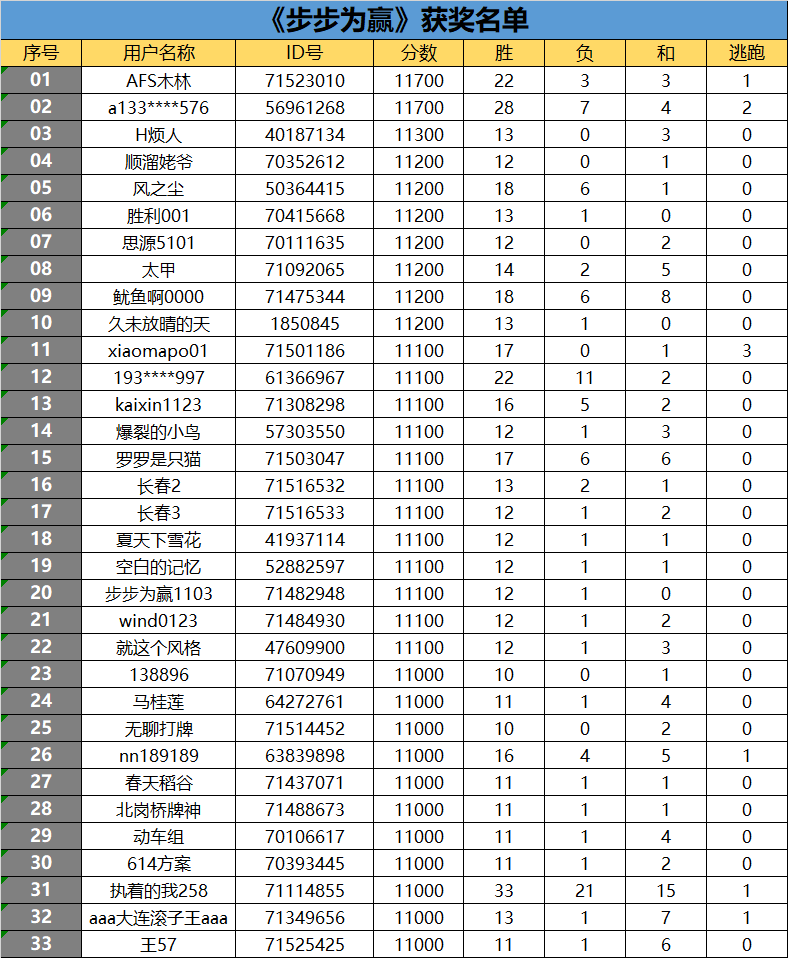 2月5日-2月11日获奖名单,100娱网币将在周五发放至各个玩家的背包,请注意查收!获奖名单如下: