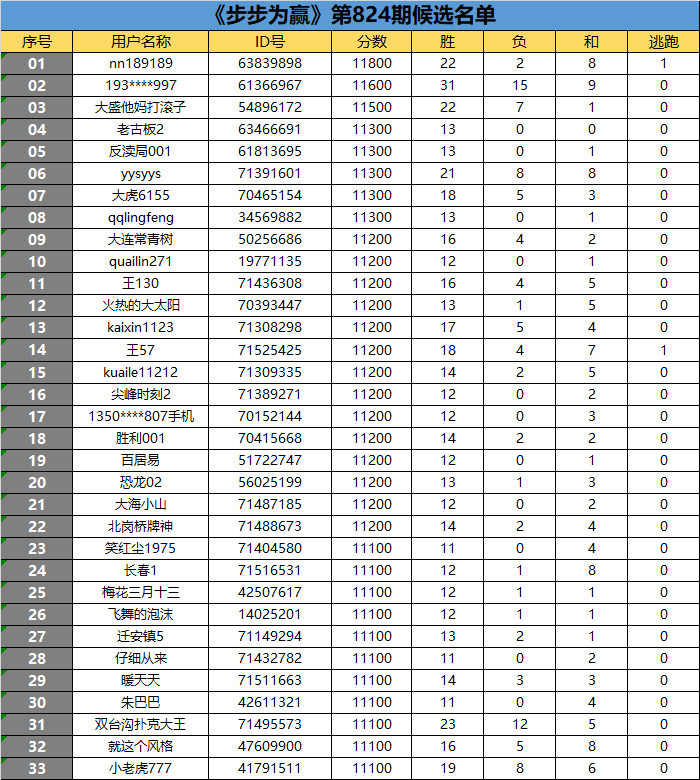 经过一周的激烈角逐,《步步为赢》第824期网络海选的33名候选选手已经揭晓。