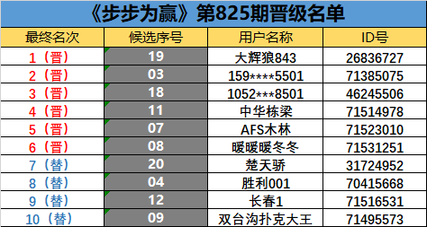 《步步为赢》第825期晋级名单公布