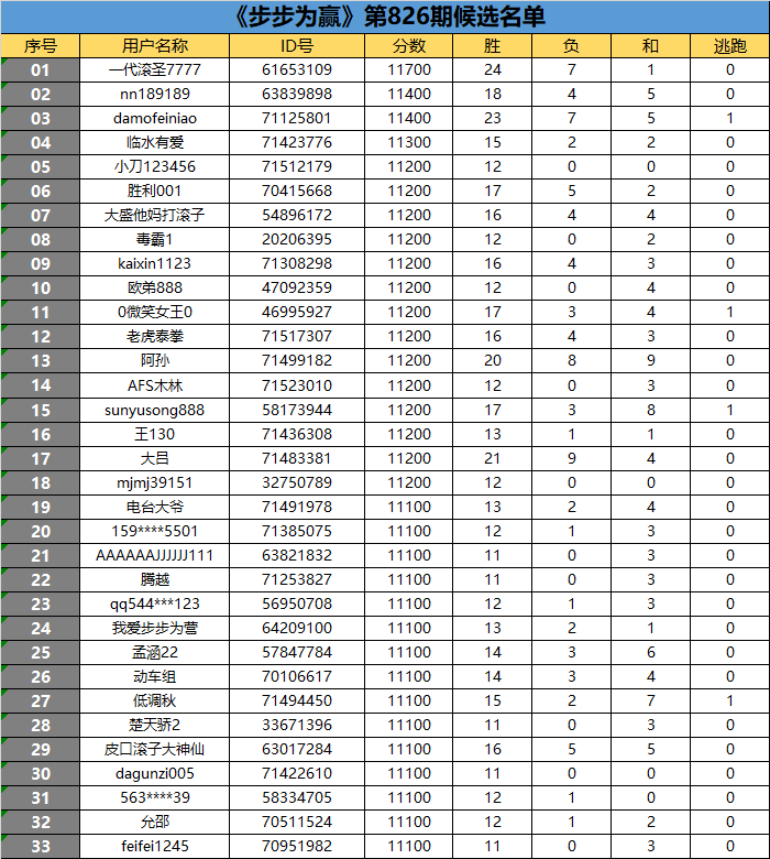 经过一周的激烈角逐,《步步为赢》第826期网络海选的33名候选选手已经揭晓。