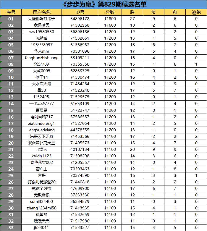 《步步为赢》第829期候选名单公布