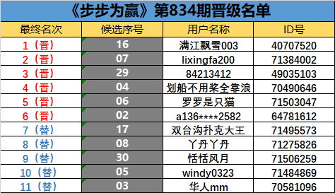 根据2024年5月16日中国福利彩票“双色球”玩法第24055开奖结果,《步步为赢》第834晋级名单已经产生。