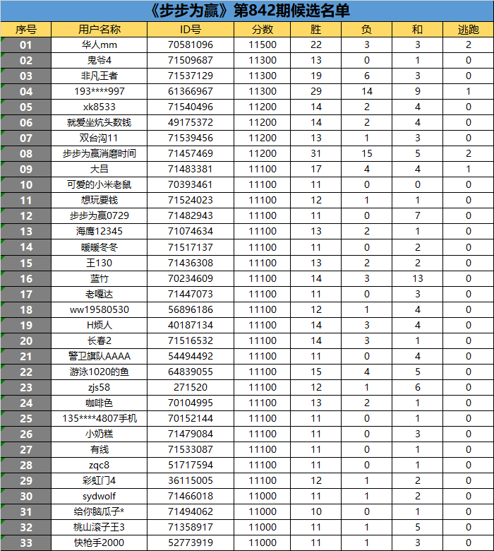经过一周的激烈角逐,《步步为赢》第842期网络海选的33名候选选手已经揭晓。