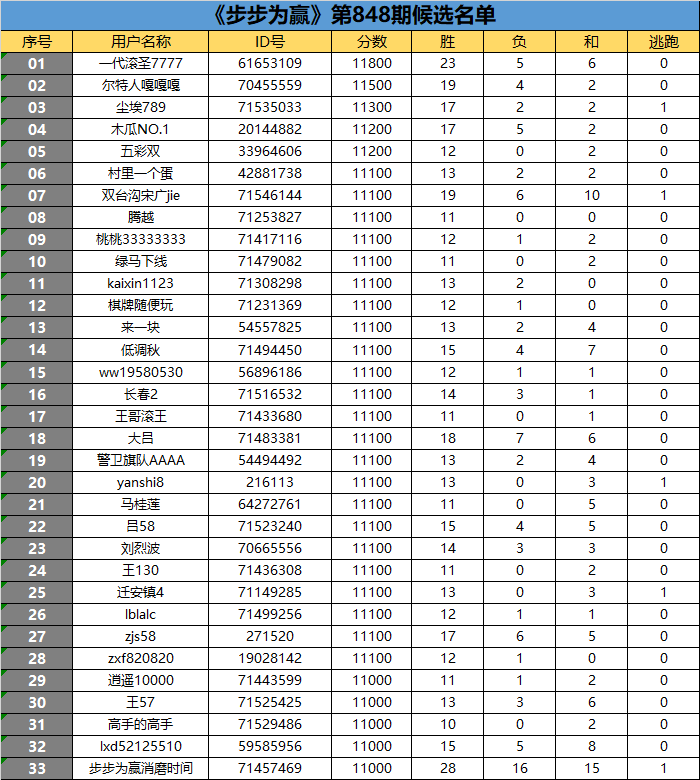 经过一周的激烈角逐,《步步为赢》第848期网络海选的33名候选选手已经揭晓。