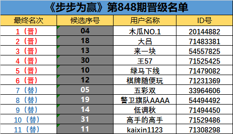 根据2024年8月22日中国福利彩票“双色球”玩法第24097开奖结果,《步步为赢》第848晋级名单已经产生。