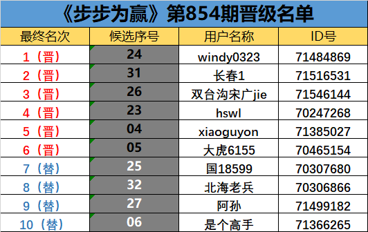 根据2024年10月3日中国福利彩票“双色球”玩法第24113开奖结果,《步步为赢》第854晋级名单已经产生。