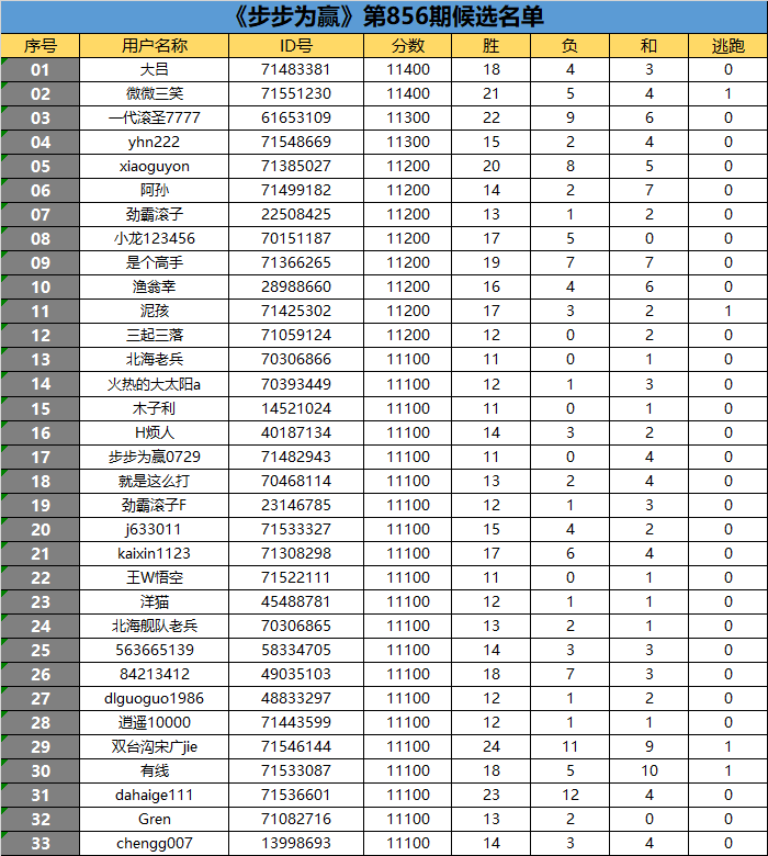 《步步为赢》第856期候选名单公布