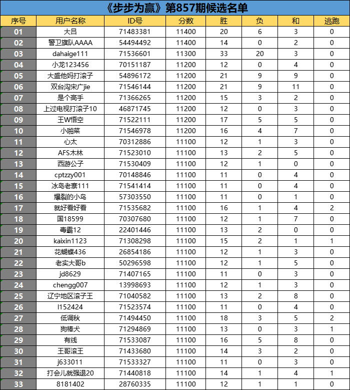 经过一周的激烈角逐,《步步为赢》第857期网络海选的33名候选选手已经揭晓。