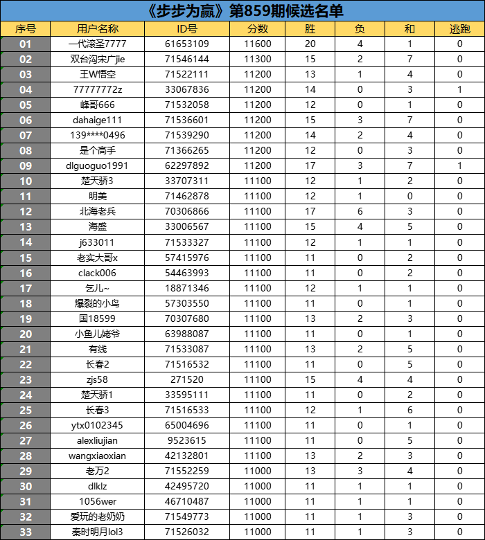 《步步为赢》第859期候选名单公布