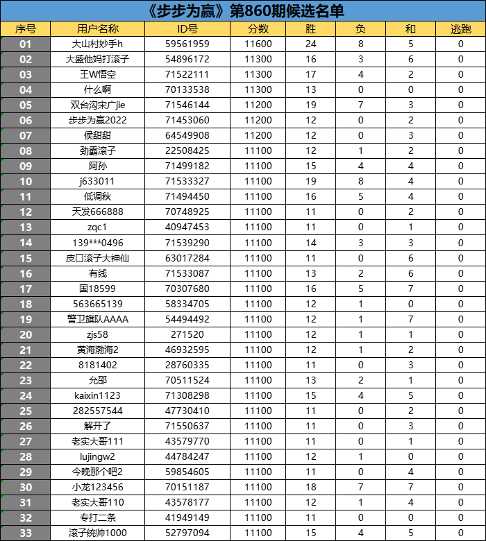 《步步为赢》第860期候选名单公布