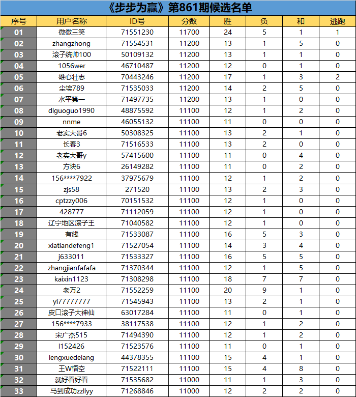 《步步为赢》第861期候选名单公布