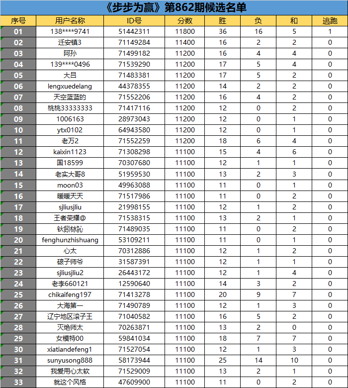经过一周的激烈角逐,《步步为赢》第862期网络海选的33名候选选手已经揭晓。