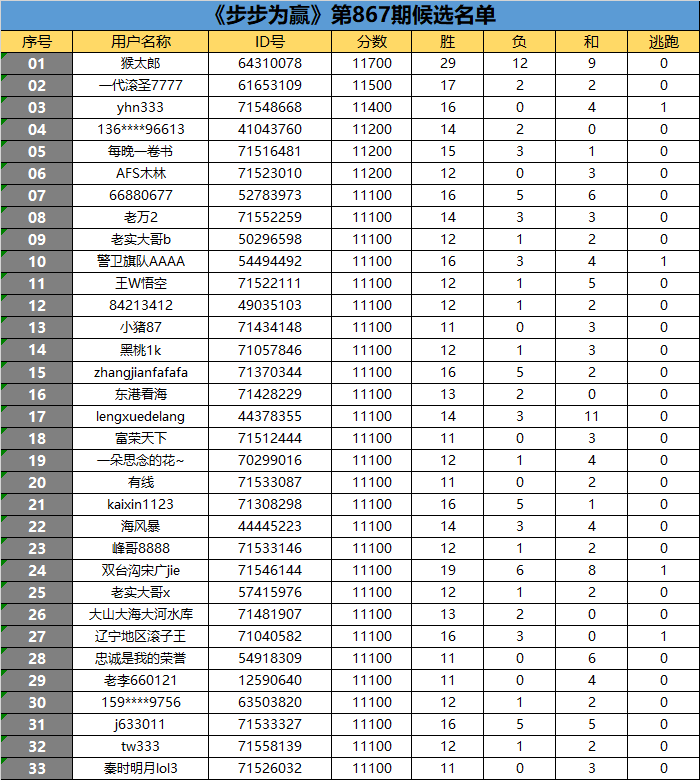 《步步为赢》第867期候选名单公布