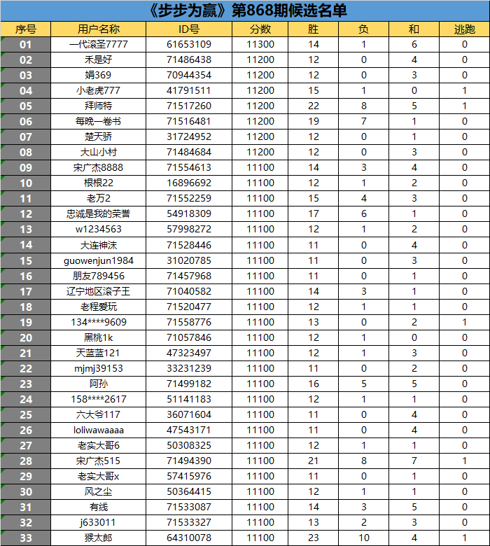 经过一周的激烈角逐,《步步为赢》第868期网络海选的33名候选选手已经揭晓。