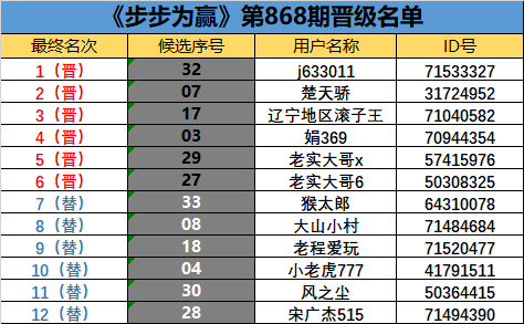 根据2025年1月9日中国福利彩票“双色球”玩法第25004开奖结果,《步步为赢》第868晋级名单已经产生。