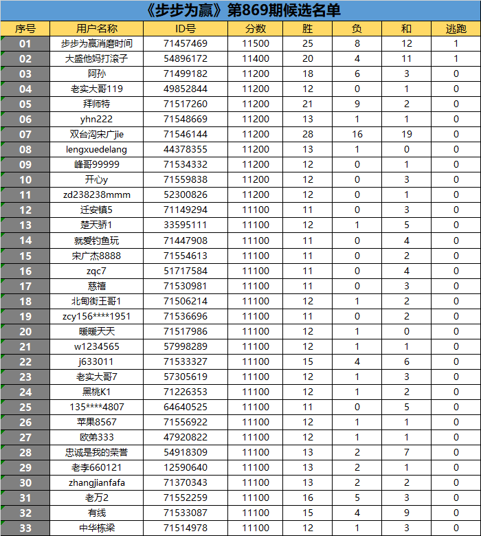 经过一周的激烈角逐,《步步为赢》第869期网络海选的33名候选选手已经揭晓。